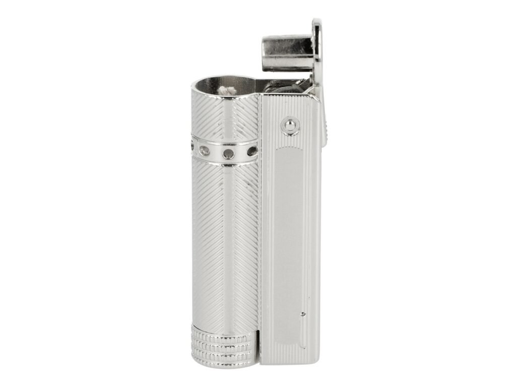 Stylový benzínový zapalovač Angel Austria Chrome. Kovový kamínkový zapalovač rakušák v chromovém lesklém provedení a texturovaným povrchem. Stisknutím a odklopením horního krytu zapalovače škrtneme kamínkem a plamen se zapálí. Ve spodní části zapalovače najdeme vysunovací zásobník s vatou pro absorbování benzínu. Benzínový retro zapalovač je dodávaný nenaplněný v dárkové krabičce. Rozměry zapalovače:6,4x2,8x1,6cm.Doplňkové parametry