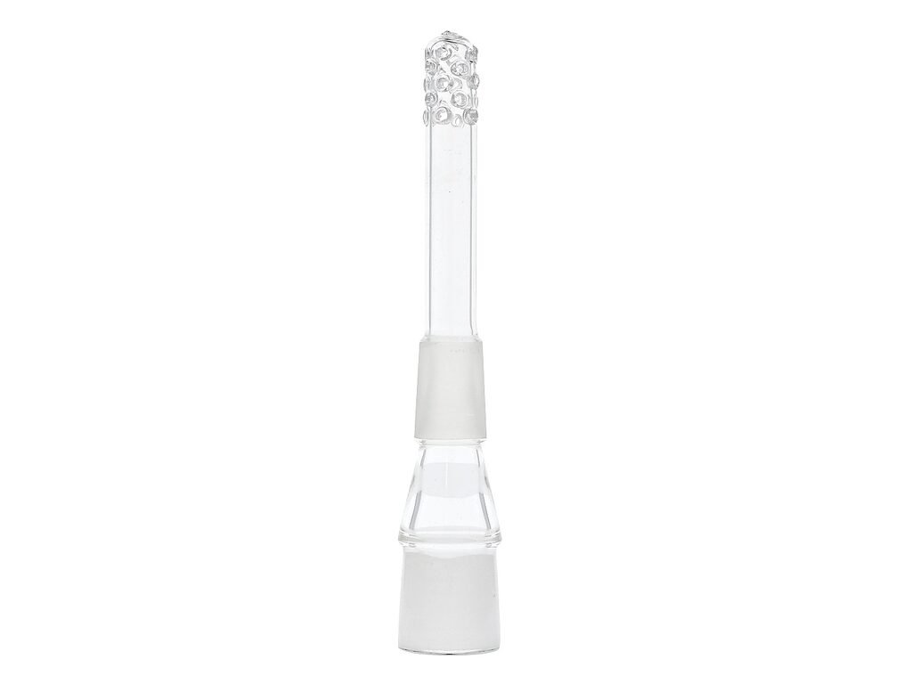 Náhradní skleněný chillum pro bongy s difuzérem a se zábrusem pro kotlík. Chillum Boost je vybavený účinným slithole difuzérem, který již od začátku kouř rozdělí, zjemní a tím jej napomáhá ochlazovat. Kvalitně zpracovaný chillum je vyrobený z borosilikátového skla, které odolává žáru. Tento chillum je určený pro bongy se zábrusem 18,8 mm. Je možné do něj vložit všechny kotlíky nebo precoolery se zábrusem 18,8 mm.Rozměry: