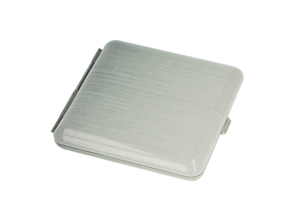 Kovová tabatěrka na 20 ks cigaret klasické velikosti (King Size) Angelo Mottled Grey. Kovové cigaretové pouzdro v šedém tónu má povrch v lesklém provedení. Zadní a přední strana pouzdra jsou stejné. Cigarety jsou uvnitř tabatěrky zajištěny gumičkou. Cigaretové pouzdro je dodávané v papírové krabičce.Vnitřní rozměry pouzdra (Š x V): 7,7 x 8 cm