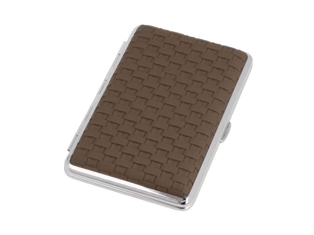 Koženková tabatěrka na dlouhé stovkové cigarety pojme 16 ks cigaret běžného průměru (King Size). Matný povrch pouzdra s hrubší texturou je ve hnědé barvě. Cigaretové pouzdro má přední a zadní stranu stejnou. Cigarety jsou zajištěny gumičkou. Tabatěrku dodáváme v papírové krabičce.Doplňkové parametry