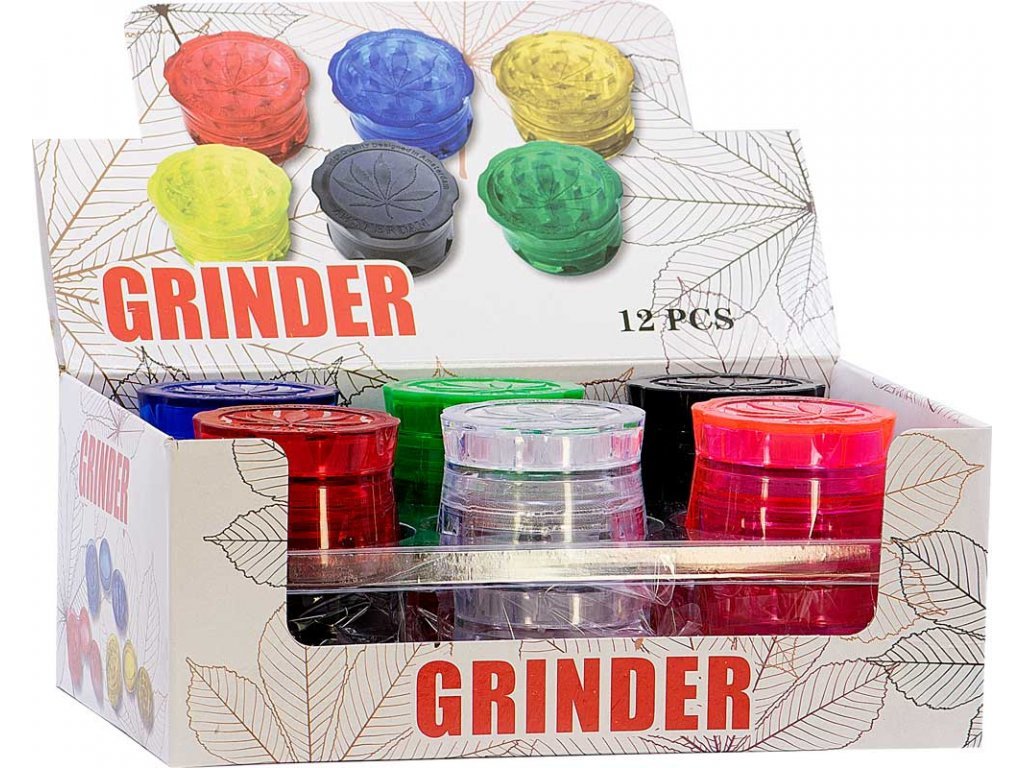 Čtyřdílný plastový drtič tabáku Remo 11548, o5,5cm, mix barev.
