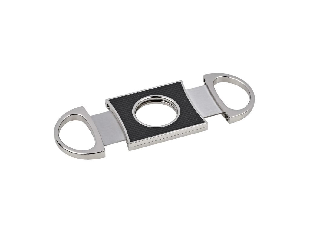 Dvoubřitý doutníkový ořezávač Angelo Karbon. Celokovový ořezávač na doutníky s lesklým chromovým povrchem v kombinaci se vzorem karbonu. Ostré břity zajistí rychlý a čistý ořez vašeho doutníku. Ořezávač je dodávaný v dárkové krabičce.Max. průměr otvoru pro doutník: 22 mm