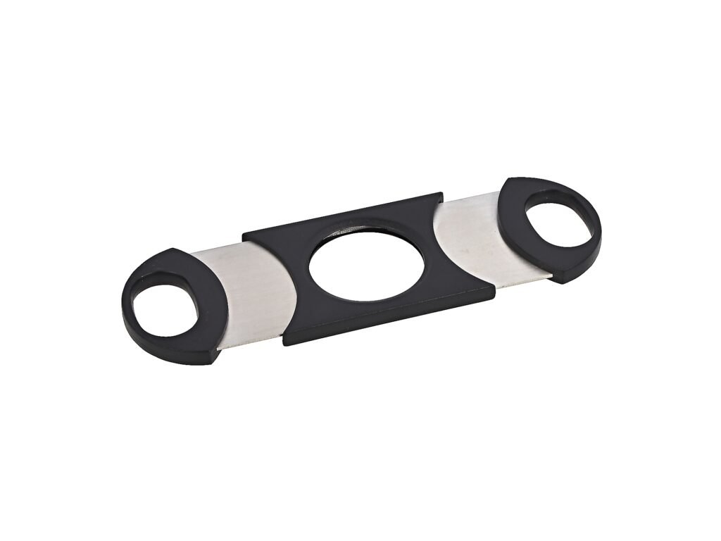 Dvoubřitý doutníkový ořezávač. Oválný ořezávač na doutníky s plastovým černým tělem v matném provedení. Ostré kovové břity zajistí rychlý a čistý ořez vašeho doutníku.Max. průměr otvoru pro doutník: 31 mm