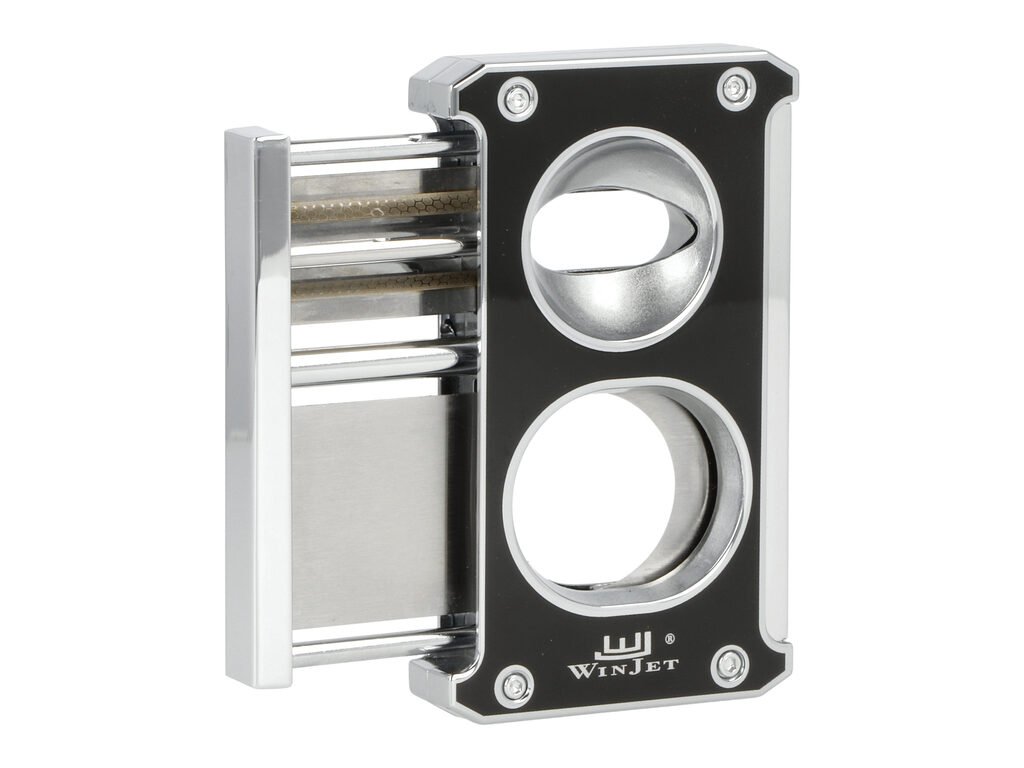 Kovový ořezávač na doutníky Winjet je trojkombinace třech doutníkových nástrojů v jednom těle. Dvoubřitý doutníkový ořezávač se dvěma možnostmi oříznutí doutníků a to klasický rovný ořez S-cut nebo ořez V-cut do tvaru V se může hodit. Oříznutí doutníků do tvaru V se opět stává populárním, jelikož takový ořez může zlepšit nejen tah doutníku, ale především změnit - zlepšit chuť při jeho kouření. Hloubka V-cutu může být až 7 mm. Ve spodní části ořezávače Winjet najdeme vyštípávač o průměru 7 mm. Břity ořezávače vyrobené z kvalitní oceli garantují dokonalý ostrý řez. Luxusní vzhled ořezávači dává lesklé černé provedení v kombinaci s prvky v lesklém chromu. Ořezávač je navíc na povrchu zdobený zapuštěnými šroubky a logem Winjet. Zmáčknutím levého boku s břity se ořezávače "odjistí" a je připravený k použití. Doutníkový ořezávač je dodáván v sametovém sáčku a dárkové krabičce Winjet.Maximální průměr otvoru pro doutník pro rovný ořez (S-cut): 22 mm