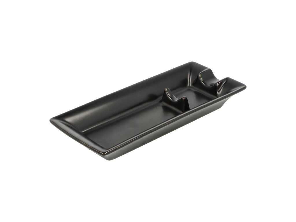 Doutníkový popelník na 1 doutník. Menší keramický popelník obdélníkového tvaru je v černém matně glazurovaném provedení. Popelník na doutníky je vybavený jedním odkladem pro doutník. Pro pohodlné odložení vašeho doutníku najdete v popelníku stojánek pro jeho opření. Díky glazuře má popelník hladký povrch, který přispívá ke snadnějšímu čištění. Popelník je dodávaný v kartonové krabici.Rozměry popelníku (Š x H x V): 175 x 74 x 23 mm