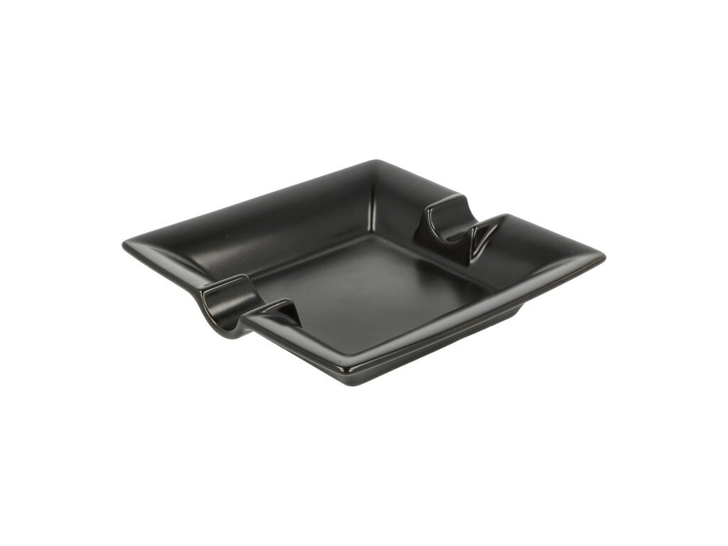 Doutníkový popelník na 2 doutníky. Čtvercový keramický popelník je v černém matně glazurovaném provedení. Hranatý popelník na doutníky je vybavený dvěma odklady pro doutník. Díky glazuře má popelník hladký povrch, který přispívá ke snadnějšímu čištění. Popelník je dodávaný v kartonové krabici.Rozměry popelníku (Š x H x V): 165 x 165 x 32 mm