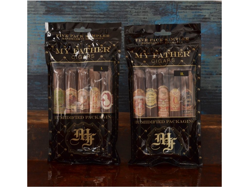 Pět ultraoblíbených doutníků My Father je uzavřeno ve zvlhčeném obalu Ziploc. Kolekce se středním až plným tělem zahrnuje Don Pepin Garcia Vegas Cubanas, Flor de las Antillas Maduro, originální My Father, El Centurion a La Duena Toro.Doplňkové parametry