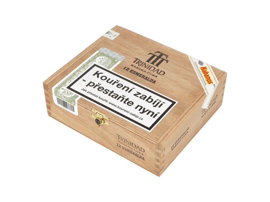 Kubánské doutníky Trinidad Esmeralda. Kvalitní doutníky, které byly původně určené pouze jako dary pro zahraniční návštěvy Fidela Castra. Doutníky Trinidad Esmeralda jsou ručně balené a precizně vyráběné z vybraných kvalitních tabáků ze známé oblasti Vuelta Abajo, ze které se také vybírají tabákové listy pro doutníky Cohiba. Kubánský doutník charakterizuje chuť a vůně cedru, kokosu a kávy v harmonickém vyvážení celkových chutí. Již před jeho zapálením ucítíte příjemnou a typickou vůni pro kubánský tabák. Doba hoření je cca 65 - 85 minut. Doutníky Trinidad Esmeralda jsou balené po 12 ks a dodávané v originálním cedrovém boxu. Prodávají se pouze po celém balení.Délka: 146 mm