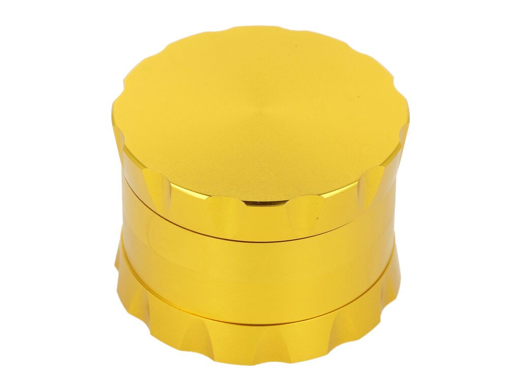 Kovový drtič tabáku a bylin Super Heroes Gold. Čtyřdílná hliníková drtička konopí a jiných bylinek se závitem, sítkem a zásobníkem je vyrobena z kvalitního hliníku CNC technologií. Drtič v lesklém zlatém provedení má hladký povrch. Drtící část je pevně spojená na závit, víčko na magnet. Broušené ostří nožů velmi jemně nadrtí vaši směs do požadované hrubosti. Drtič je dodávaný v kartonové krabičce.Průměr drtiče: 60 mm