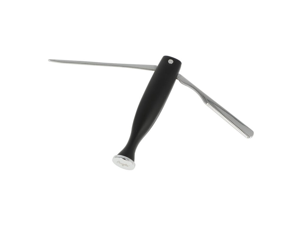 Elegantní dusátko do dýmky. Třídílné kovové dýmkové dusátko Angelo je v černé barvě s polomatným povrchem. Dýmkový nůž, dusátko a trn jsou vyrobené z leštěného nerezu. Praktická pomůcka, kterou kuřák dýmky každodenně potřebuje pro pěchování tabáku do dýmky, důkladné vyčištění a údržbu dýmky. Dodáváme v dárkové krabičce.Celkové rozměry (Š x H x V): 12 x 16 x 90 mm