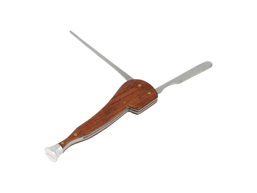 Kovové dusátko do dýmky. Třídílné dýmkové dusátko Faro s dřevěným povrchem ve světle hnědém provedení je vyrobené z nerezu. Dýmkový nůž, trn a dusátko jsou v leštěném provedení. Praktická pomůcka, kterou kuřák dýmky každodenně potřebuje k pěchování tabáku do dýmky, důkladnému vyčištění a údržbě dýmky. Dodáváme v dárkové krabičce.Celkové rozměry (Š x H x V): 12 x 25 x 94 mm