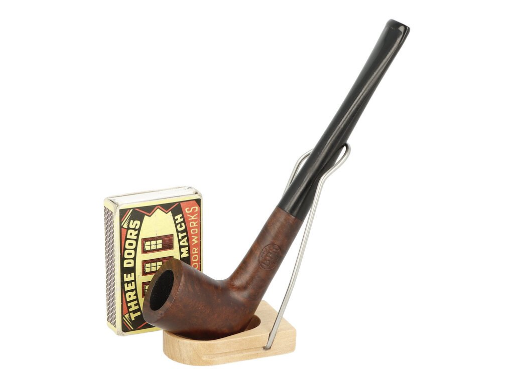 Kvalitní bruyerová dýmka s chladičem od známého výrobce BPK Proseč je precizně a ručně vyrobená. V dýmce s chladičem se nepoužívá filtr. Ochlazení kouře zajištuje kovový chladič, který je vložený mezi troubelem a náustkem. Chladič je součástí dýmky. Dýmka je dodávána v originální krabičce. Zobrazený stojánek není součástí balení dýmky.Rovná dýmka je ve hnědém provedení s méně výraznou kresbou. Na boku dýmky najdeme rytý nápis "BPK". Hlava dýmky je pololesklá, akrylátový náustek lesklý.