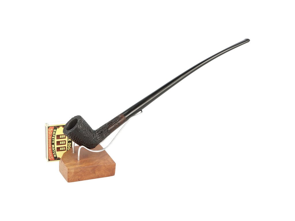 Dlouhá čtenářská dýmka s chladičem. Kvalitní briárová dýmka od známého výrobce BPK Proseč je precizně a ručně vyrobená. V dýmce s chladičem se nepoužívá filtr. Kovový chladič vložený mezi troubelem a náustkem slouží jako kondenzační část a sráží se na něm močka. Díky tomu jazyk tolik nepálí, kouření je "chladnější" a tím pádem více příjemné. Chladič je součástí dýmky. Dýmka je dodávána v originální krabičce. Zobrazený stojánek není součástí balení dýmky.Zahnutá tzv. televizní dýmka je ve tmavě hnědém rustikálním provedení s nevýraznou kresbou. Na boku čtenářské dýmky najdeme rytý text "MT". Hlava dýmky je lesklá, černý ebonitový náustek také.