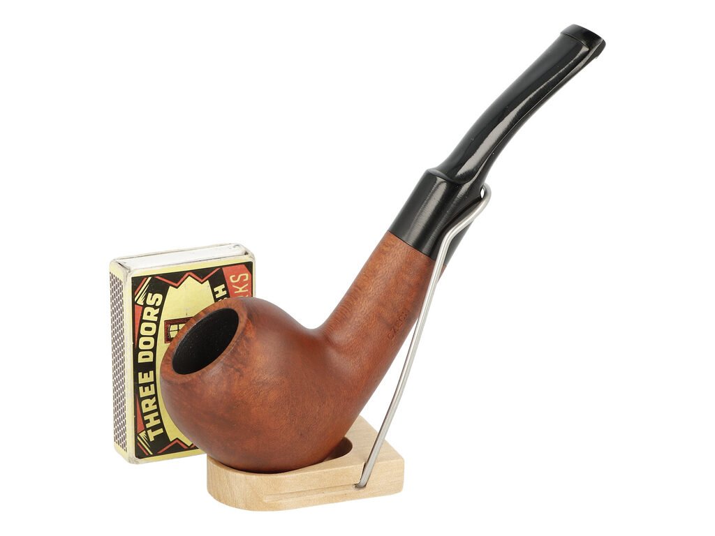 Kvalitní briárová dýmka s chladičem od známého výrobce BPK Proseč je ručně vyrobená z vybraných kusů briárového dřeva. V dýmce s chladičem se nepoužívá filtr. Kovový chladič vložený mezi troubelem a náustkem slouží jako kondenzační část a sráží se na něm močka. Díky tomu jazyk tolik nepálí, kouření je "chladnější" a tím pádem více příjemné. Chladič je součástí dýmky. Dýmka je dodávána v originální krabičce. Zobrazený stojánek není součástí balení dýmky.Mírně zahnutá dýmka je ve tmavším hnědém odstínu s jemnou kresby. Na boku dýmky najdeme rytý nápis "Czech". Hlava dýmky je matná, černý akrylátový náustek lesklý.