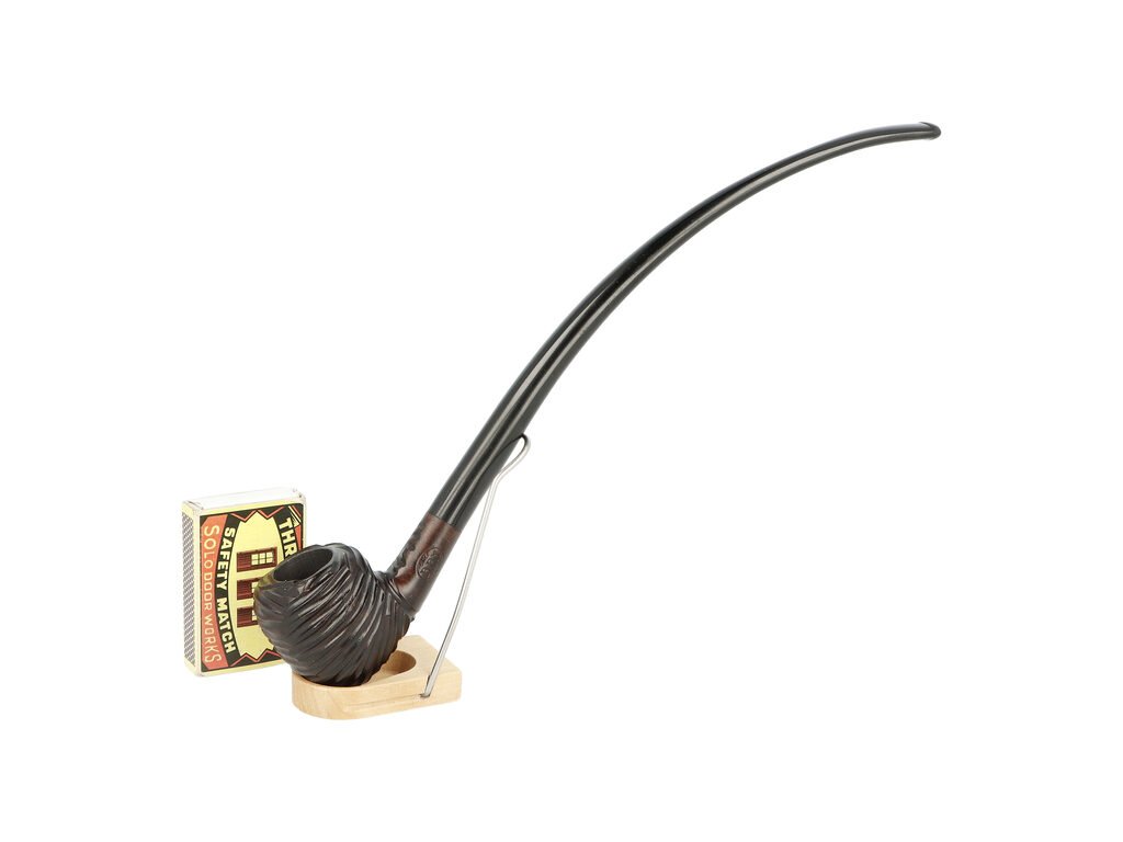 Dlouhá čtenářská dýmka BPK s chladičem. Kvalitní briárová dýmka od známého výrobce BPK Proseč je precizně a ručně vyrobená. V dýmce s chladičem se nepoužívá filtr. Kovový chladič vložený mezi troubelem a náustkem slouží jako kondenzační část a sráží se na něm močka. Díky tomu jazyk tolik nepálí, kouření je "chladnější" a tím pádem více příjemné. Chladič je součástí dýmky. Dýmka je dodávána v originální krabičce. Zobrazený stojánek není součástí balení dýmky.Zahnutá tzv. televizní dýmka je ve tmavě hnědém rustikálním provedení bez kresby. Na boku čtenářské dýmky najdeme rytý text "BPK". Hlava dýmky je lesklá, černý ebonitový náustek také.