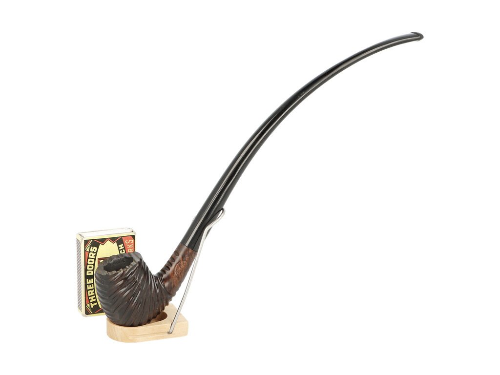 Dlouhá čtenářská dýmka s chladičem. Kvalitní bruyerová dýmka od známého výrobce BPK Proseč je precizně a ručně vyrobená. V dýmce s chladičem se nepoužívá filtr. Ochlazení kouře zajištuje kovový chladič, který je vložený mezi troubelem a náustkem. Chladič je součástí dýmky. Dýmka je dodávána v originální krabičce. Zobrazený stojánek není součástí balení dýmky.Zahnutá tzv. televizní dýmka je ve tmavém hnědo černém rustikálním provedení bez kresby. Na boku je dýmka zdobená rytým nápisem "BPK". Hlava dýmky je pololesklá, černý ebonitový náustek lesklý.