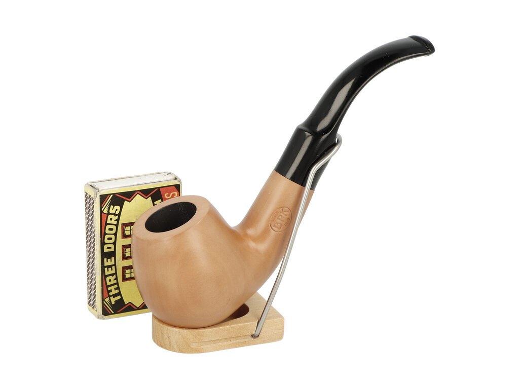 Dýmka z hruškového dřeva BPK s filtrem 9 mm. Dýmka hruška od známého výrobce BPK Proseč je ručně a precizně vyrobená z kvalitního vyzrálého dřeva. Hruškové dýmky jsou příjemnou změnou pro kuřáka briérových dýmek za velice výhodnou cenu. Dýmka je dodávána v originální krabičce BPK. Filtr a zobrazený stojánek není součástí balení dýmky.Zahnutá dýmka je ve světlém přírodním provedení s málo výraznou kresbou. Na boku je dýmka zdobená rytým nápisem "BPK". Hladká hlava dýmky je lesklá, černý ebonitový náustek také. Dýmka je díky svému zahnutému tvaru také vhodná pro začínající kuřáky dýmky.