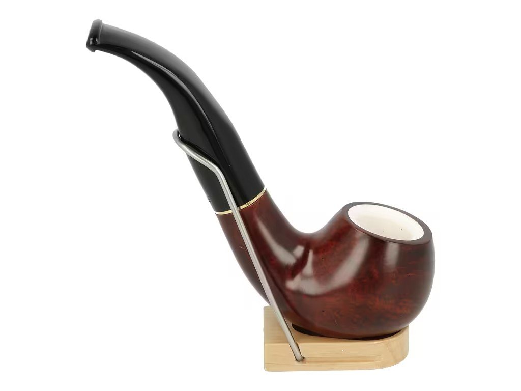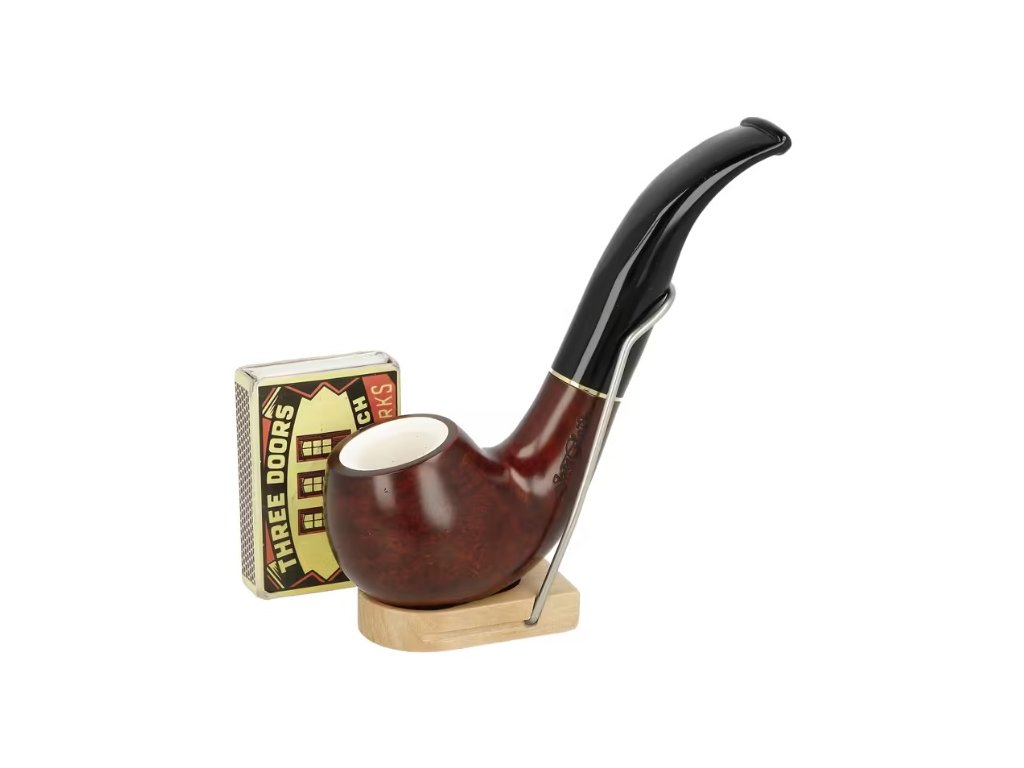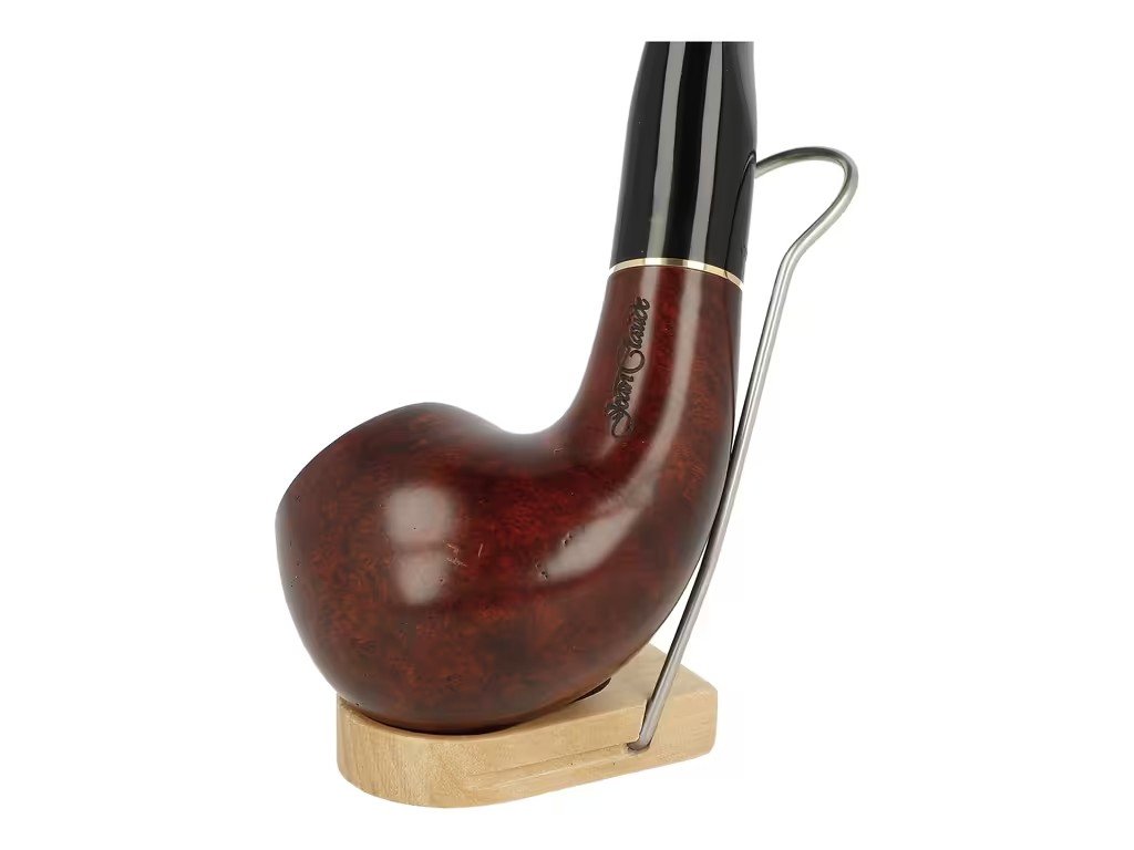 Dýmka s vložkou z mořské pěny a filtrem 9 mm. Briérová dýmka Jean Claude Meerschaum je precizně vyrobená z jakostního briérového dřeva. Meršánová vložka uvnitř hlavy zajišťuje dýmce větší odolnost vůči žáru a díky tomu dehtový roztok (odpadní produkt vznikající při hoření tabáku) v dýmce rychleji vysychá. Mezi troubelem a náustkem je vložený okrasný kovový kroužek. Součástí dodávky dýmky není filtr. Dýmka je dodávaná v látkovém sáčku. Vyobrazený stojánek není součástí balení dýmky.Zahnutá dýmka je ve tmavém hnědo bordovém hladkém provedení s méně výraznou kresbou dřeva. Na boku je dýmka zdobená rytým nápisem "Jean Claude". Hlava dýmky je lesklá stejně jako černý akrylátový náustek.; Filtr do dýmky: 9 mm; Délka dýmky: 135 mm; Výška hlavy: 40 mm; Šířka hlavy: 41 mm; Průměr tabákové komory: 17 mm; Hloubka tabákové komory: 27 mm; Hmotnost dýmky: 60 g; Druh dýmky dle materiálu: dýmka brier s vložkou z mořské pěny; Výrobce - dřevo/náustek: Itálie; Kompletace: Itálie; Distributor: Fortis-DB, spol. s r.o.Doplňkové parametry