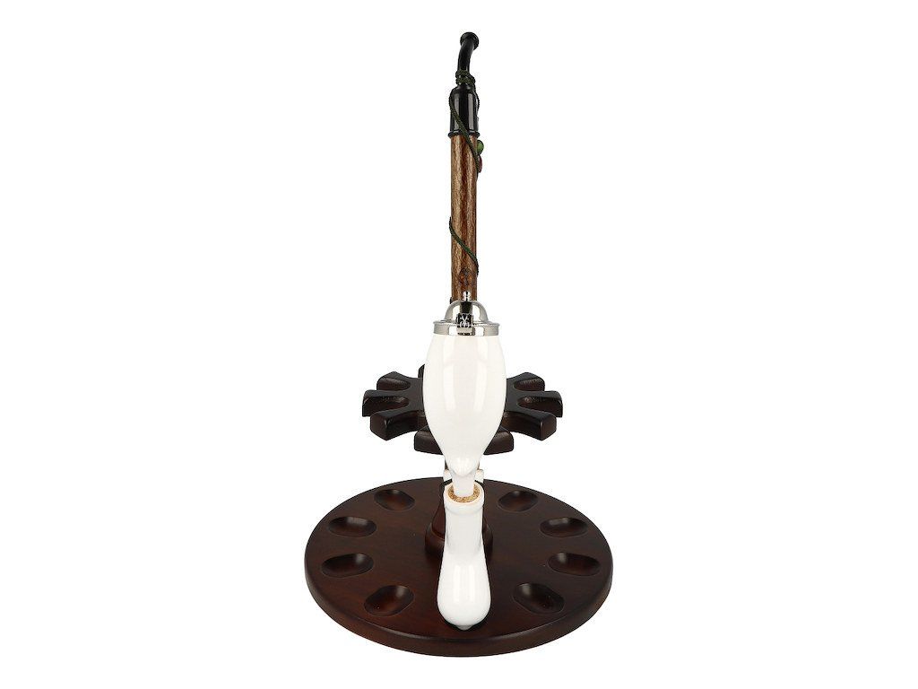 Keramická dýmka BPK Proseč. Porcelánka s čistou bílou keramickou hlavou bez motivu je precizně ručně vyrobená. Keramická část dýmky má lesklý glazurovaný povrch. Fajfka s dřevěným troubelem ukončená akrylátovým náustkem je zdobená omotanou šňůrkou ukončenou dřevěnými korálky. Hlavu dýmky uzavírá efektní chromové víčko, které je zdobené jemným gravírováním. Keramická dýmka je dodávaná v dárkové krabičce. Zobrazený stojánek není součástí balení dýmky.Filtr/chladič: ne