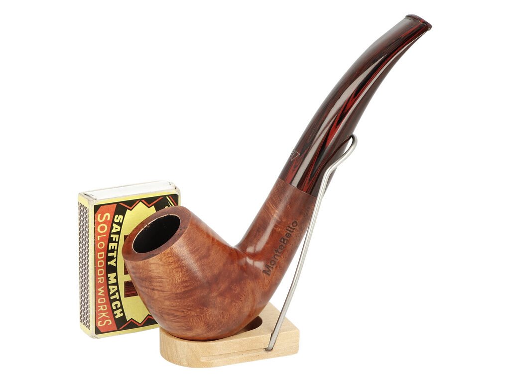 Dýmka Monte Bello Bent Billiard s filtrem 9 mm. Ručně vyrobená brierová dýmka v limitované edici Monte Bello vznikla na počest známého českého dýmkařského výrobce Antonína Zieglera. Dýmky, jejichž autory jsou Jan Klouček a Radek Koutný, byly produkovány v dílně v Okrouhlici, kde byla historicky umístěna i jeho dílna. Díky tomuto vznikly precizně zpracované brierové dýmky vynikající kvality a designu, které nejednomu kuřáku dýmky udělají velkou radost. Na ruční výrobu dýmek Monte Bello jsou použité výběrové kusy briaru ze Španělska a kvalitní německé náustky z Cumberlandu. Dýmku dodáváme v sametovém stahovacím sáčku a originální dárkové krabičce. Filtr a vyobrazený stojánek není součástí balení dýmky.Zahnutá brierová dýmka s filtrem je ve hnědém provedení s jemnou kresbou. Dýmka je na boku zdobená rytým nápisem "MonteBello". Hladká hlava dýmky je lesklá stejně jako barevný náustek s jemnou kresbou.