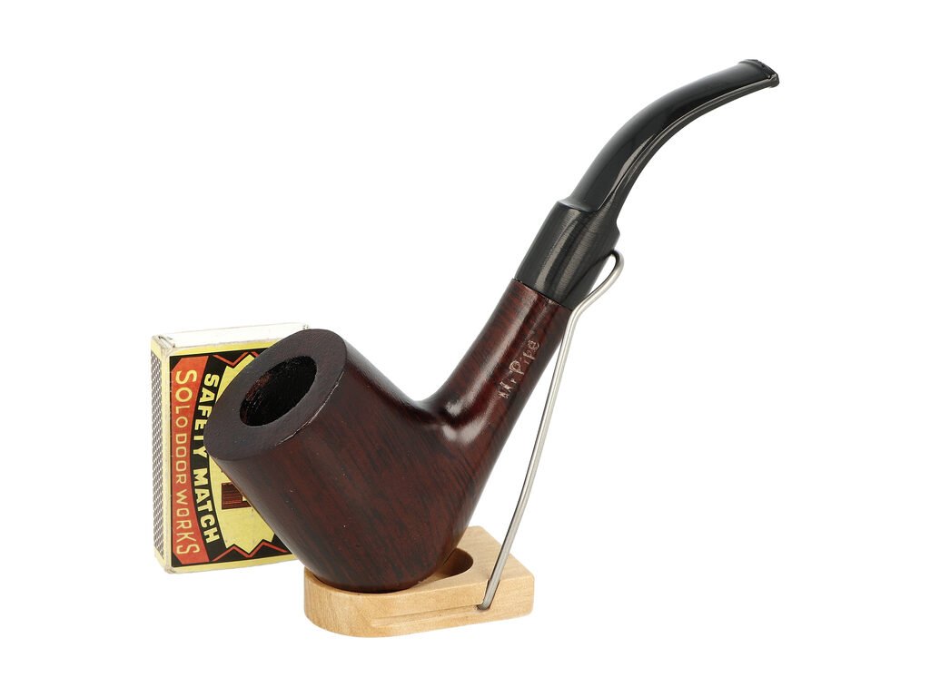 Dýmka s filtrem 9 mm se stojánkem. Dřevěná dýmka Poker Walnut 2 je vyrobená z ořechového dřeva. Dýmka s krásnou kresbou dřeva je ukončena černým akrylátovým náustkem. Součástí balení je plastový skládací stojánek, který můžete mít stále u sebe a koženkové stahovací pouzdro, které dýmku ochrání před poškozením. Dýmka Walnut je vhodnou volbou pro každodenní kouření díky skvělému poměru cena vs výkon. Dýmka je dodávaná v dárkové krabičce. Filtr a stojánek na kterém je dýmka zobrazena, nejsou součástí balení dýmky.Zahnutá dýmka je ve tmavě hnědém odstínu s jemnou kresbou. Na boku najdeme rytý nápis "Mr. Pipe". Hlava dýmky je lesklá, černý náustek také.