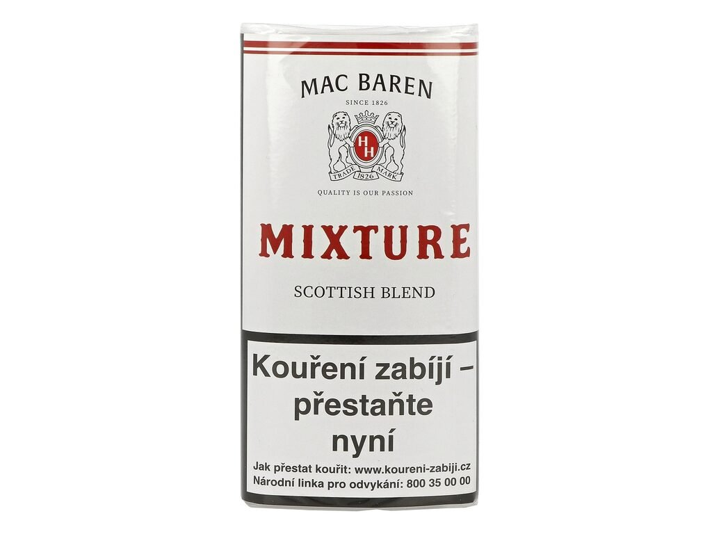 Dýmkový tabák Mac Baren Mixture Scottish Blend. Vyvážená dýmková směs tabáku Burley, Virginie a Cavendishe s lehkým příjemným aroma. Tento tabák je vhodný pro kuřáka dýmky začátečníka, ale i pokročilému kuřákovi přinese výborný požitek z kouření. Jde o jeden z nejoblíbenějších tabáků a to nejen v Dánsku. Prodej po celém balení (boxu) 5 ks. Cena je uvedená za 1 ks.Síla:slabý