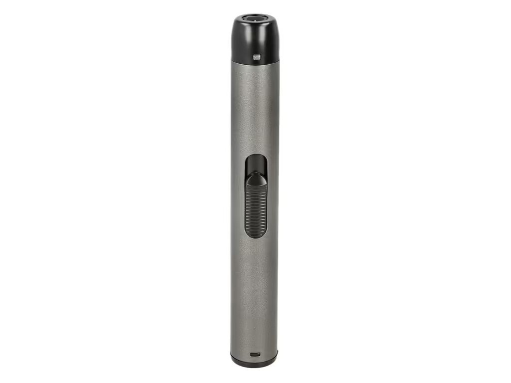 Plynový domácnostní zapalovač Stick s turbo plamenem. Tryskový zapalovač je vhodný pro zapalování sporáků, krbů, svíček nebo také uhlíků do vodních dýmek. Povrch v šedém metalickém provedení je doplněný černými prvky. Díky jeho tvaru se dostanete i na hůře přístupná místa pod hrnec apod. Tryska zapalovače, která vyvine silný plamem, se zapálí jednoduchým pohybem horního tlačítka směrem nahoru. Ve spodní části najdeme plnicí ventil plynu. Cena je uvedená za 1 ks. Rozměry zapalovače (Š x H x V): 2,4 x 2,1 x 16 cm; Materiál: kov/plast. BEZPEČNOSTNÍ VAROVÁNÍ Pozor, nenechávejte v dosahu dětí! Zapalovač nezapalujte v blízkosti obličeje nebo oděvu. Obsahuje hořlavý plyn pod stálým tlakem. Nevystavujte teplotám vyšším než 50°C ani delšímu slunečnímu svitu. Nepropichujte ani nevhazujte do ohně. Přesvědčte se, že zapalovač po použití dále nehoří. Nenechávejte plamen hořet déle než 10 sekund.Doplňkové parametry