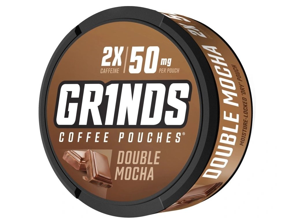 GRINDS nebo Grinds Coffee Pouches (kávové sáčky) jsou malé sáčky čerstvě mleté, ochucené kávy, které vám pomohou cítit se bystře a soustředěně po celý den nebo noc. Původně byly navrženy jako zdravá alternativa bez tabáku a nikotinu k bezdýmnému tabáku.Každá plechovka GRINDS 50mg obsahuje 18 sáčků s bohatou chutí Double Mocha – kombinace čokolády a kávy, která povzbudí všechny tvé smysly. Obsahuje mletou kávu, vitamíny skupiny B a taurin. Silné, sladké a připravené tě nakopnout kdykoliv během dne.Doplňkové parametry