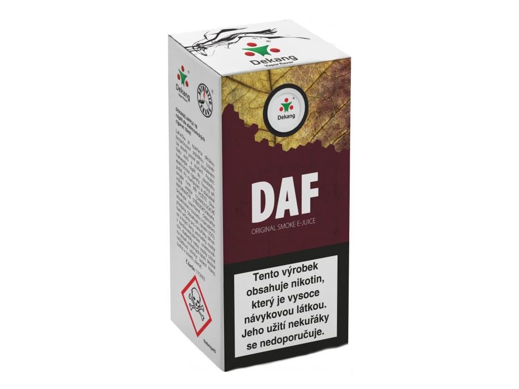 E-liquid Dekang DAF s příchutí cigaretového tabáku.Doplňkové parametry