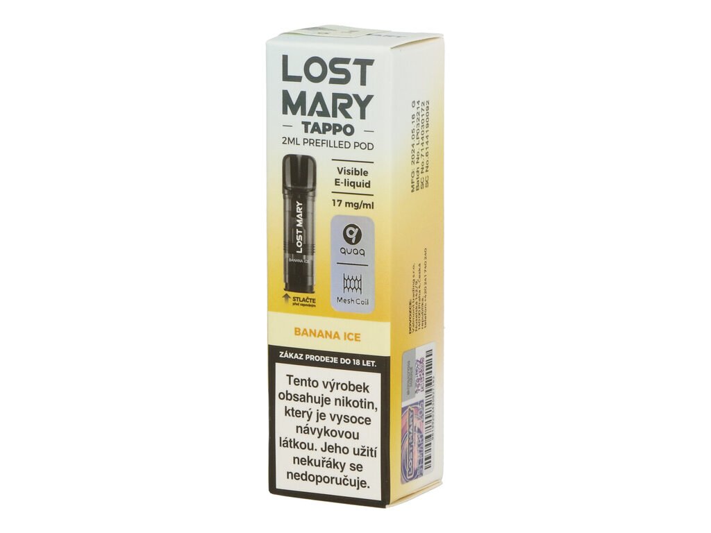 Náhradní cartridge pro elektronické cigarety LOST MARY TAPPO s příchutí ledového banánu je revolucí v jednorázovém vapování. Díky propracované meshové spirálce nabídne skvělé podání chuti a perfektní projev. Příchuť je tak plná, bohatá a autentická. Obsluha celého zařízení je velmi jednoduchá. Vyjměte starou cartridge ze zařízení, vložte novou a můžete vapovat bez zbytečné údržby a starostí. Cena je uvedena za 1 ks balení(1x POD).Veškeré baterie a cartridge řady LOST MARY TAPPO jsou zároveň plně kompatibilní s řadou ELF BAR ELFA!