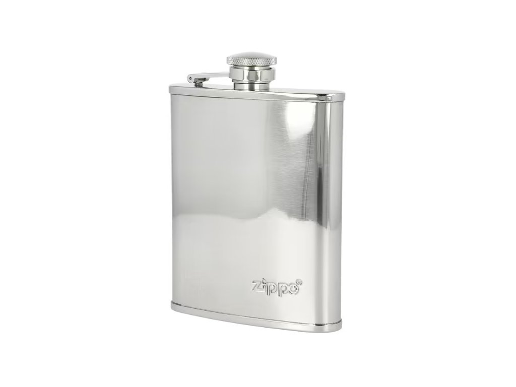 Originální nerezová placatka Zippo na alkohol. Kapesní likérka vyrobená z nerezové oceli má leštěný povrch. Čelní strana je zdobená logem Zippo. Likérka klasického prohnutého tvaru je vybavená šroubovacím uzávěrem a držákem víčka, který zabrání jeho ztrátě. Placatka je dodávaná v originální krabičce.; Objem: 177 ml / 6 oz;Rozměry (Š x H x V): 93 x 25 x 130 mm;Materiál: nerezová ocelDoplňkové parametry