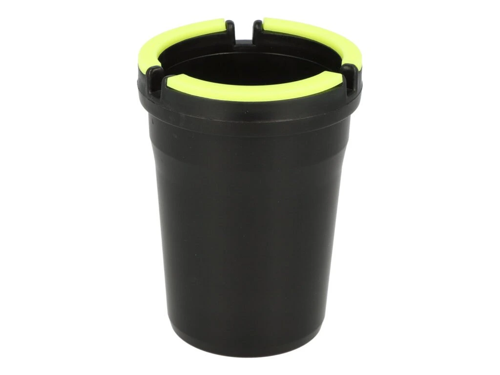 Cigaretový popelník do auta Wildfire GID Stripe Glow in the dark. Horní okraj plastového popelníku "svítí" ve tmě zeleně. Díky jeho konstrukci - speciální horní části se Vám nestane, že popel bude okolo popelníku. Popel padá otvorem ve středu víčka do nádoby a tím se bezpečně udrží uvnitř. Současně víčko popelníku slouží jako držák na 3 cigarety, který jistě využijete nejen při jízdě. Popelník je lehce umístitelný do běžného držáku na nápoje. Využití tohoto popelníku nenajdete pouze v autě, ale třeba na balkóně, terase či zahradním altánu, kde udržení čistoty okolí je též žádané. Cena je uvedena za 1 ks.; Průměr dna: 6 cm; Horní průměr: 8,1 cm; Výška: 11 cmDoplňkové parametry