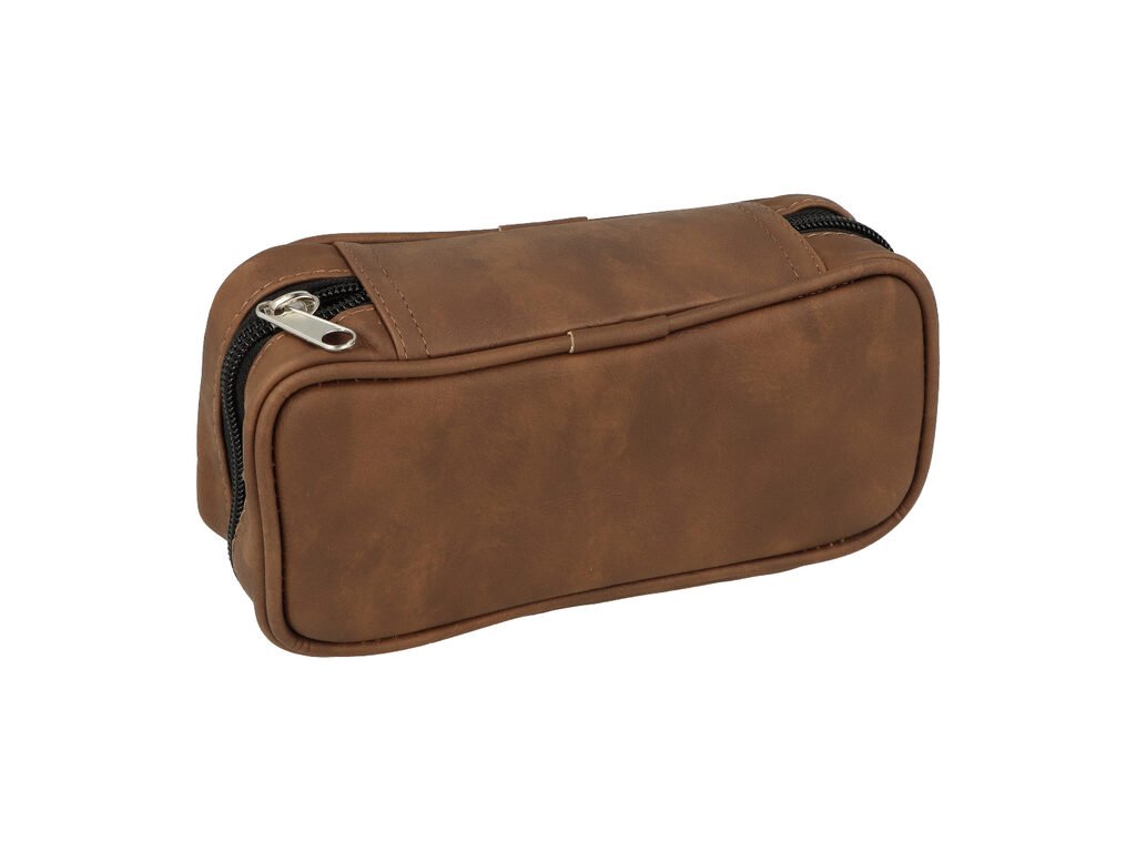 Koženkové pouzdro na 2 dýmky se zipem Angelo. Pouzdro na dýmky vyrobené z hnědé koženky má matný hladký povrch. Uvnitř uzamykatelného pouzdra na zip najdeme prostor pro dvě dýmky a dvě praktické kapsy. Otevřenou kapsu můžete využít na dýmkové příslušenství, vyndavací kapsa uzavíratelná na patenty je vhodná na tabák. Pouzdro nejen ochrání vaši oblíbenou dýmku, ale současně poskytne prostor pro vše potřebné pro kouření dýmky. Zobrazená dýmka není součástí balení.Vnější rozměry pouzdra (Š x H x V): 190 x 68 x 98 mm