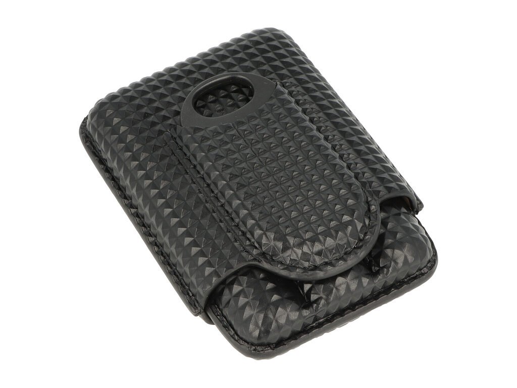Koženkové pouzdro na tři doutníky s ořezávačem. Doutníkové pouzdro Angelo Diamond vyrobené z kvalitní silné koženky v černé barvě má texturovaný povrch. Na přední straně najdeme kapsu, ve které je uschován dvoubřitý plastový ořezávač na doutníky. Pouzdro pojme tři kusy doutníků o průměru 24 mm, které ochrání před poškozením. Pouzdro na doutníky je dodávané v kartonové krabičce.Vnitřní prostor pro doutníky (délka doutníku): max. 120 - 138 mm