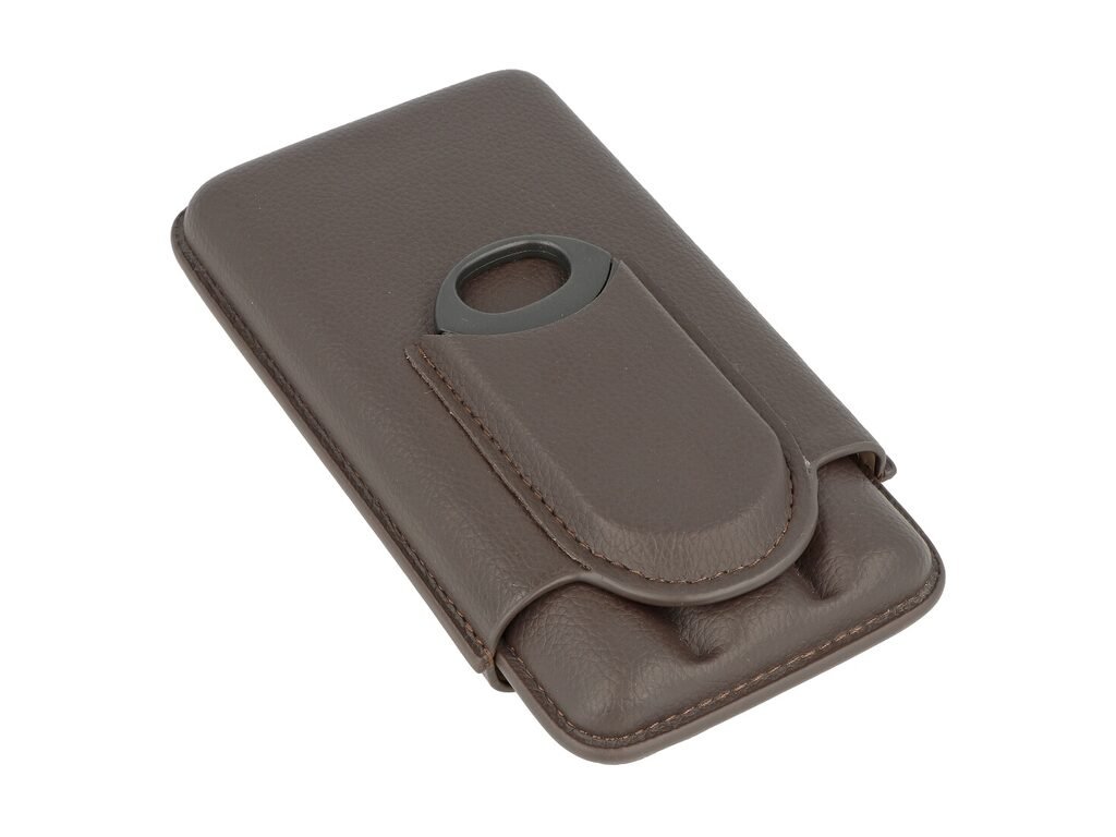 Koženkové pouzdro na tři doutníky s ořezávačem. Doutníkové pouzdro vyrobené z kvalitní koženky ve tmavě hnědé barvě má jemně texturovaný povrch. Na přední straně najdeme kapsu, ve které je uschován dvoubřitý plastový ořezávač na doutníky. Pouzdro pojme tři kusy doutníků o průměru 24 mm, které ochrání před poškozením. Pouzdro na doutníky je dodávané v kartonové krabičce.Vnitřní prostor pro doutníky (délka doutníku): max. 163 mm