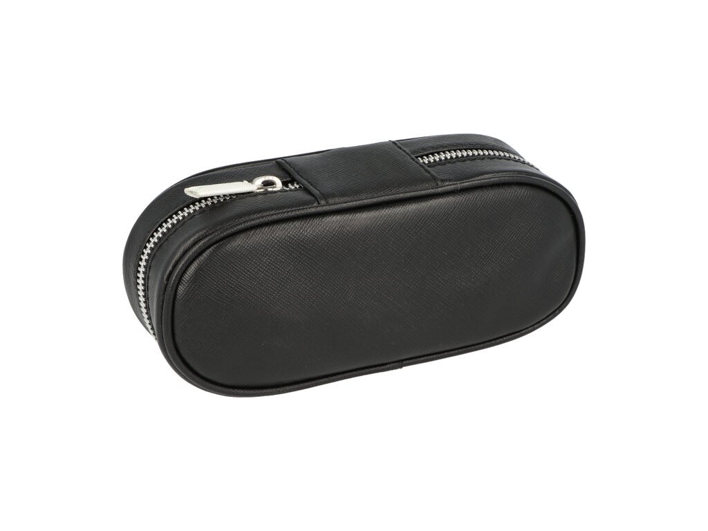 Kožené pouzdro na 3 dýmky se zipem. Oválné pouzdro na dýmky vyrobené z kvalitní kůže je v černém odstínu. Jemně texturovaný kožený povrch je v polomatném provedení. Po rozepnutí zipu najdeme hlavní prosto pro tři dýmky. Pouzdro je také možné používat pouze pro dvě dýmky a do třetího širšího úchytu můžeme vložit např. dýmkový tabák nebo jiné kuřácké drobnosti. Dýmkové pouzdro nejen ochrání vaši oblíbenou dýmku, ale současně poskytne prostor pro vše potřebné při kouření dýmky.Vnější rozměry pouzdra (Š x H x V): 190 x 65 x 85 mm