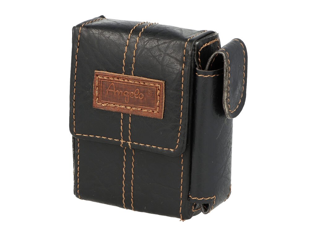 Koženkové pouzdro na cigarety s kapsou na zapalovač Angelo Box. Pouzdro na celou krabičku cigaret KING SIZE (85 mm výška) je vyrobené z černé koženky s jemnou texturou. Na povrchu je zdobené prošíváním. Na boční straně nejdeme praktickou kapsičku na zapalovače. Pouzdro je možné zavěsit za opasek díky poutku na zadní straně. Vypadnutí krabičky a zapalovače zajistí zapínání na jeden patent. Pouzdro na cigarety je dodáváno v dárkové kartonové krabičce.Vnitřní rozměry pro krabičku (Š x H x V): 65 x 21 x 87 mm