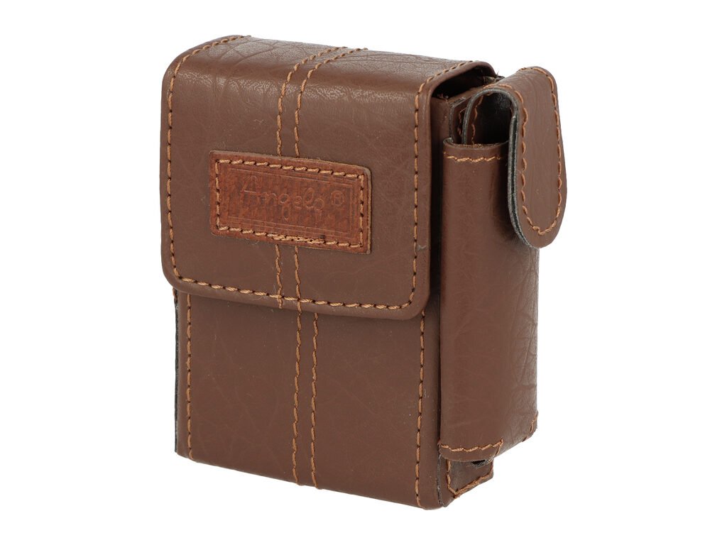 Koženkové pouzdro na cigarety s kapsou na zapalovač Angelo Box. Pouzdro na celou krabičku cigaret KING SIZE (85 mm výška) je vyrobené ze světle hnědé koženky s jemnou texturou. Na povrchu je zdobené prošíváním. Na boční straně nejdeme praktickou kapsičku na zapalovače. Pouzdro je možné zavěsit za opasek díky poutku na zadní straně. Vypadnutí krabičky a zapalovače zajistí zapínání na jeden patent. Pouzdro na cigarety je dodáváno v dárkové kartonové krabičce.Vnitřní rozměry pro krabičku (Š x H x V): 65 x 21 x 87 mm