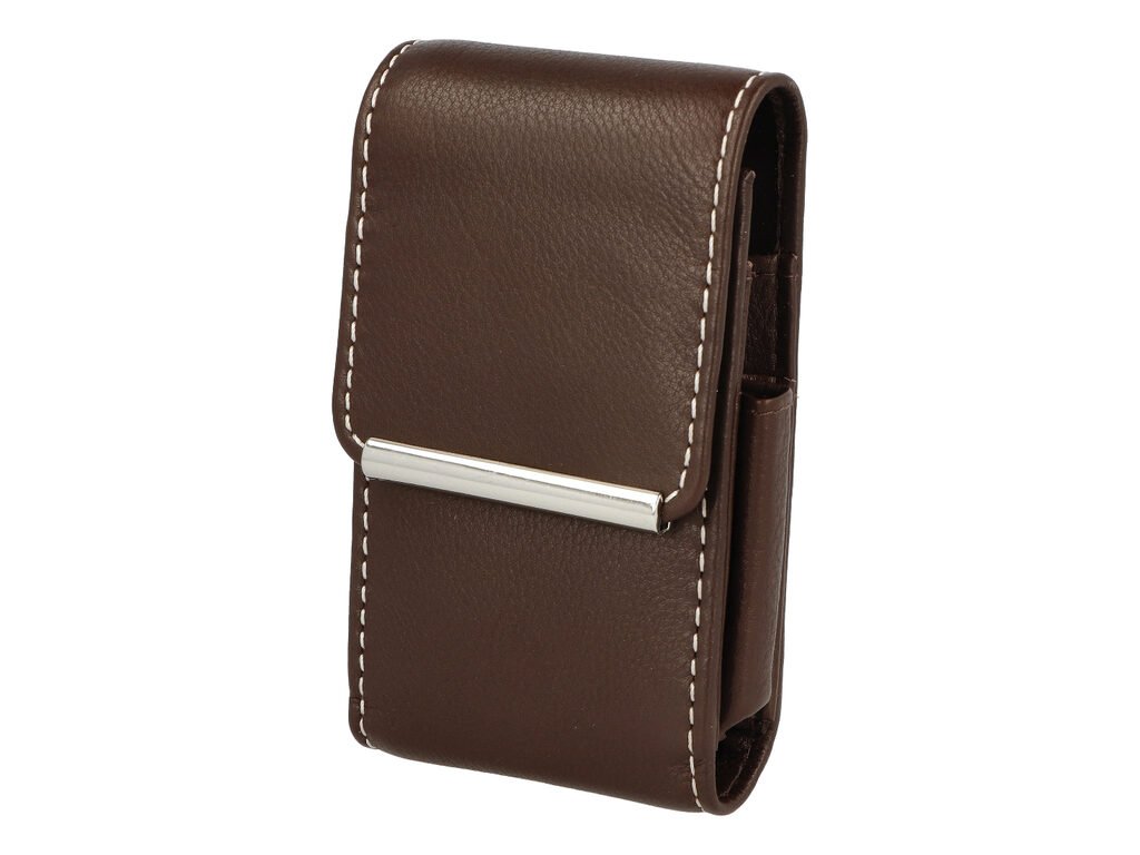 Univerzální pouzdro na cigarety s boční kapsičkou na zapalovač. Tmavě hnědé kožené pouzdro na celou krabičku cigaret 80 mm nebo 100 mm dlouhých je vyrobené z jemné hladké kůže. Vypadnutí krabičky zajišťuje zapínání pouzdra na magnet. Díky dvěma zapínacím magnetům je cigaretové pouzdro vhodné jak pro krabičku cigaret běžné velikosti King Size, tak i pro krabičku dlouhých stovkových cigaret. Na boční straně najdeme praktickou kapsičkou na zapalovač. Pouzdro na cigarety je dodáváno v kartonové krabičce.Vnitřní rozměry zapnutého pouzdra pro King Size krabičku (Š x H x V): 60 x 28 x 100 mm