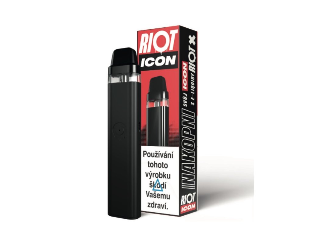 Objevte plnitelnou elektronickou cigaretu Riot Icon s vyměnitelnými pody a kvalitním kovovým tělem. Zařízení napájí baterie o kapacitě 1200 mAh, která zaručí vapování pro ty nejnáročnější. Riot Icon nabízí snadnou obsluhu a možnost upravení výkonu žhavící hlavy, díky čemuž je skvělý pro každého uživatele. Plnitelné pody s objemem 2 ml díky průhledným stěnám poskytují informaci o úrovni naplnění. Vyzkoušejte Riot Icon se svými oblíbenými e-liquidy. RIOT Icon je elektronická cigareta s otevřeným systémem, která nabízí kapacitu baterie 1200 mAh a možnost regulace intenzity pro přizpůsobení zážitku podle vašich preferencí. Zařízení umožňuje snadné doplňování e-liquidu a přehlednou viditelnost hladiny e-liquidu, což zajišťuje pohodlné a praktické používání Spojení RIOT Icon s oblíbenými e-liquidy RIOT X poskytuje skvělý chuťový zážitek a intenzivní vapování pro každodenní použití..Doplňkové parametry