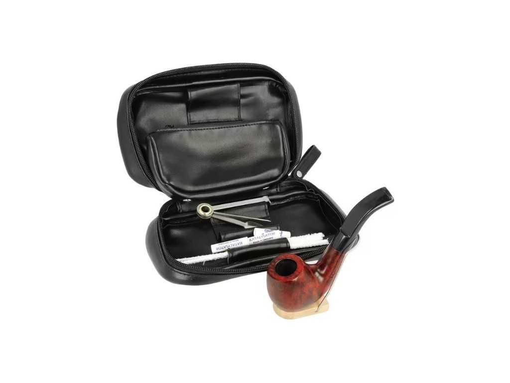 Sada pro kuřáky dýmky - startovací set. Dýmková sada obsahuje bruyerovou dýmku Angelo s filtrem 9 mm, koženkové pouzdro na dýmku, ťapťátko, tři dýmkové filtry a čističe dýmky. Dárková sada je vhodná jako dárek pro začínajícího kuřáka dýmky, kterým jistě uděláte radost. Zobrazený stojánek není součástí balení dýmky. Obsah balení: 1x dýmka, 1x dusátko, 3x filtry do dýmky, 3x dýmkové čističe, 1x pouzdro na dýmku.Doplňkové parametry