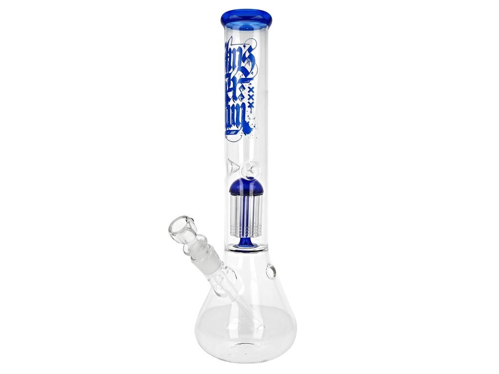 Skleněný bong s perkolací Amsterdam Beaker Blue, 40cm