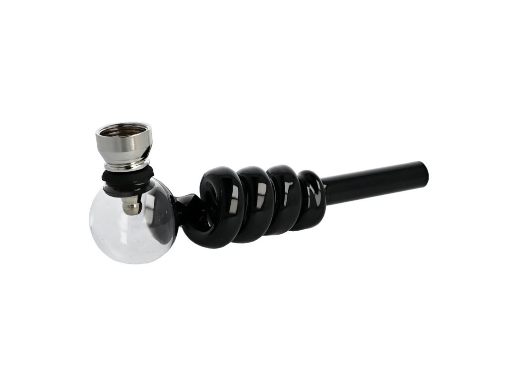 Skleněná šlukovka Spiral. Černá šlukovka ve spirálovém provedení je vyrobená z kvalitního skla. Kovový kotlík se sítkem je v chromovém lesklém provedení. Pro snadné čištění šlukovky lze kotlík vyjmout. Díky svojí malé hmotnosti a zpracování lehce padne do ruky. Šlukovka je dodávaná v papírové krabičce.Délka šlukovky: 140mm