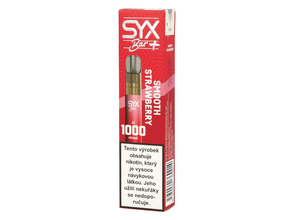 Jednorázová e-cigareta SYX BAR Vám nabízí skvělý zážitek při vapingu v podobě chutí, které jsou všem známé z liquidů SYX. Jednorázovka s lahodnou a jemnou příchutí čerstvých jahod Vás nadchne svým projevem a autentičnosti příchutě.Uvnitř jednorázovky SYX BAR najdete baterii 550 mAh, která zajistí dostatečnou energii pro až 1000 potahů. Kolik liquidu v jednorázovce Vám ještě zbývá, zjistíte díky průhledné nádržce, kterou SYX BAR obsahuje. Technologie Air-Oil-Parted, která je v jednorázových e-cigaretách SYX BAR použita, zabraňuje protečení e-liquidu (liquid je oddělený od airflow). Nikotinová příchuť o objemu 2 ml (NicSalt) s intenzitou 16,5 mg bude bohatě stačit nejen začínajícímu vaperovi, tak i pokročilému. Prodej pouze po celém boxu (5 ks e-cigaret). Cena uvedená za 1 ks.