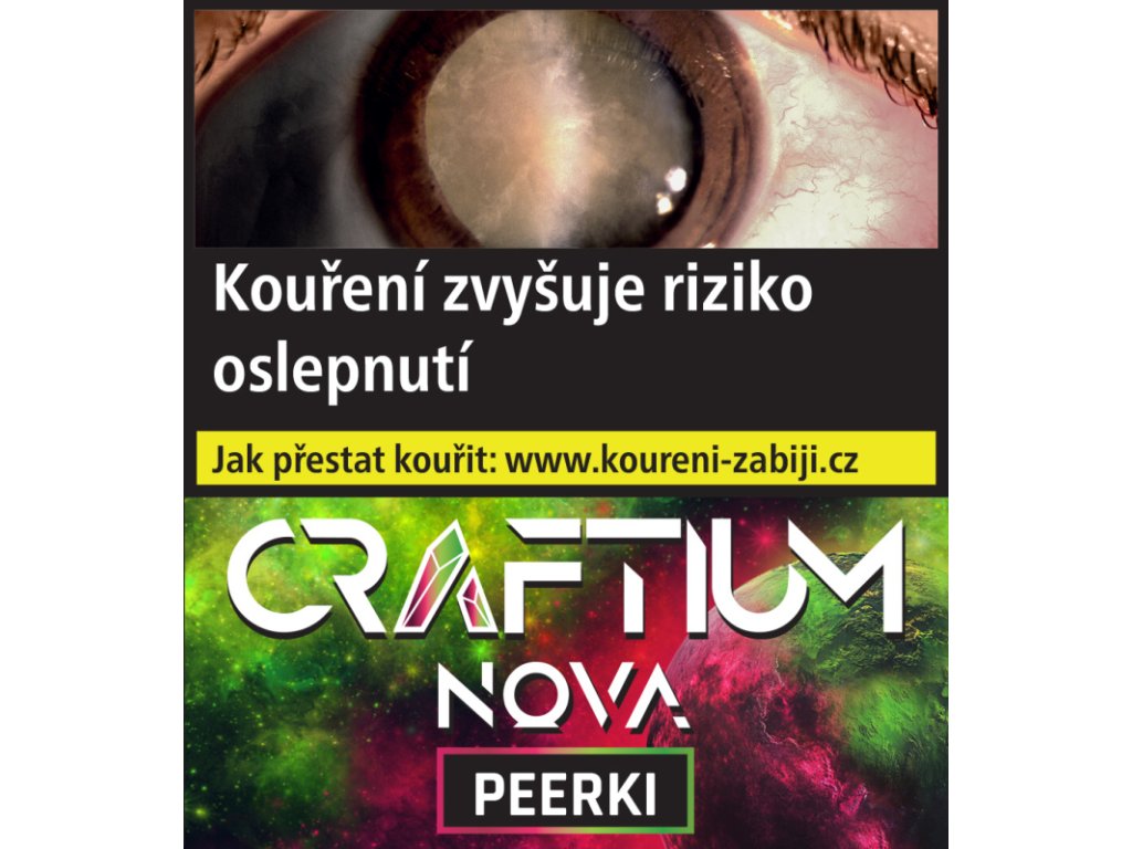 Příchuť: Peerki - plná sladkost lahodné šťavnaté hrušky osvěžená jemnou kyselostí kiwi. Český výrobce prvotřídního tmavého tabáku značky Craftium přichází s opravdovou vycházející hvězdou dýmkařského nebe - novou řadou dokonale vyladěných tabáků Craftium Nova. Tabáková směs obsahuje větší podíl lístků odrůdy Burley, což dodává tabáku ještě plnější a intenzivnější chuť. Díky vylepšené receptuře se s tabákem snadněji pracuje při nabíjení korunky a vynikající tepelná odolnost zajišťuje dlouhotrvající výdrž.Doplňkové parametry