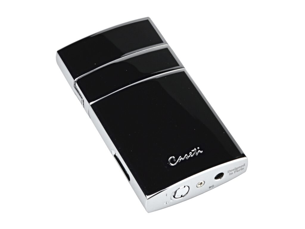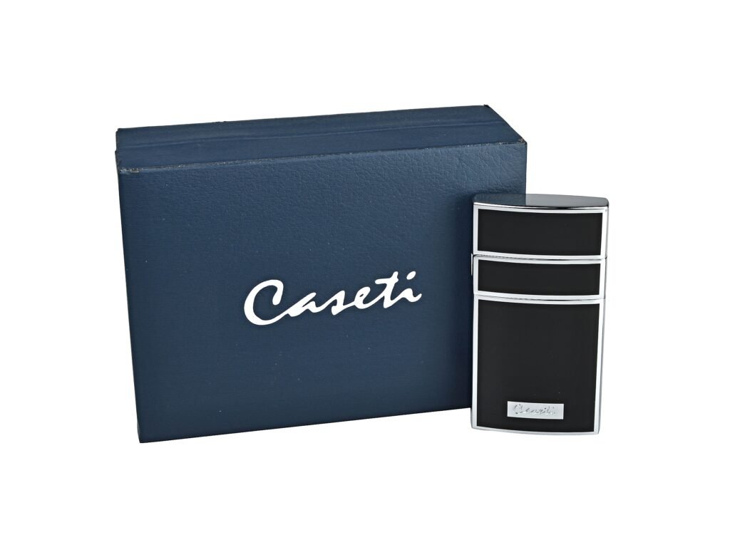 Elegantní tryskový zapalovač Caseti. Kvalitně zpracovaný kovový turbo zapalovač je provedený v černo-chromové lesklé kombinaci. Po odklopení horního krytu a stisknutí tlačítka se zapálí plamen. Ve spodní části zapalovače najdeme plnící ventil plynu a ovládání intenzity plamene. Zapalovač je dodáván v dárkové krabičce. Rozměr 7,1x3,7cm.Doplňkové parametry