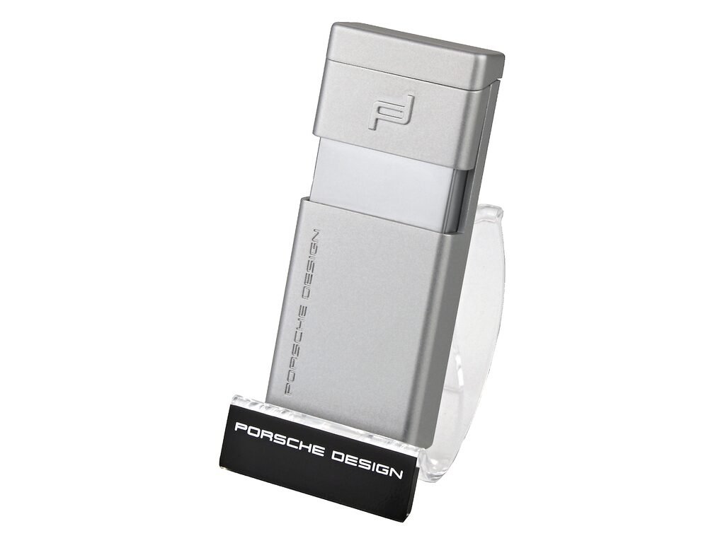 Luxusní tryskový zapalovač značky Porsche Design v industriálním designu a odklápěcím krytem, který zabraňuje vstupu prachu do trysky. Exklusivitu zapalovači dává nejen logo Porsche Design na přední straně, ale především precizní výroba, kvalitně zpracovaný povrch a neotřelé barevné provedení. Po odklopení horní krytu zapalovače a stisknutí čelního tlačítka dolů, dojde zapálení jedné trysky, která vytvoří silný plamen. Na zadní straně zapalovače je okénko, kterým vidíme hladinu plynu. Ve spodní části zapalovače najdeme nastavení intenzity plamene a plnící ventil. Zapalovač Porsche Design je dodáván v dárkové krabičce s logem. Výška: 7,5cm.Distributor: Fortis-DB, spol. s r.o.