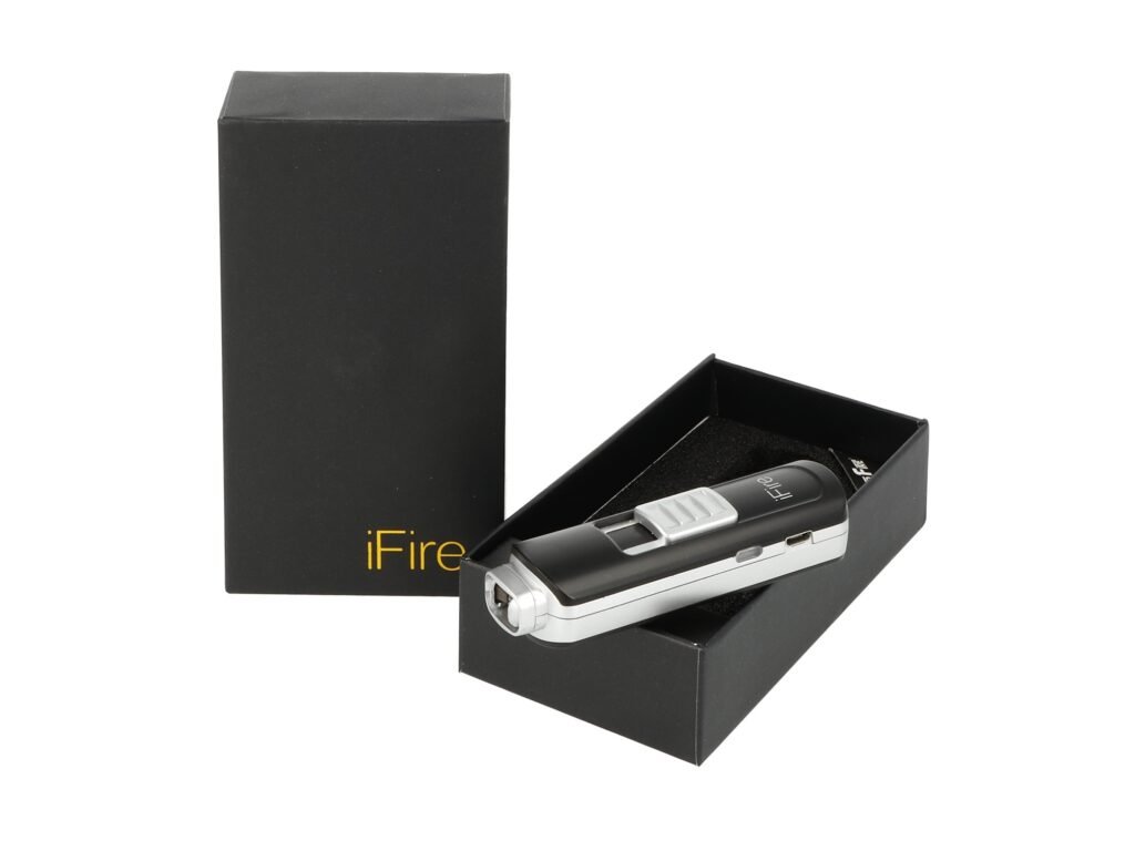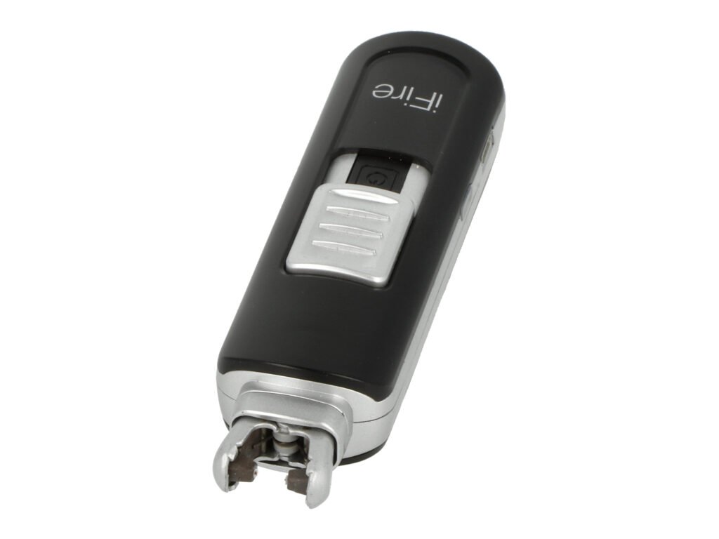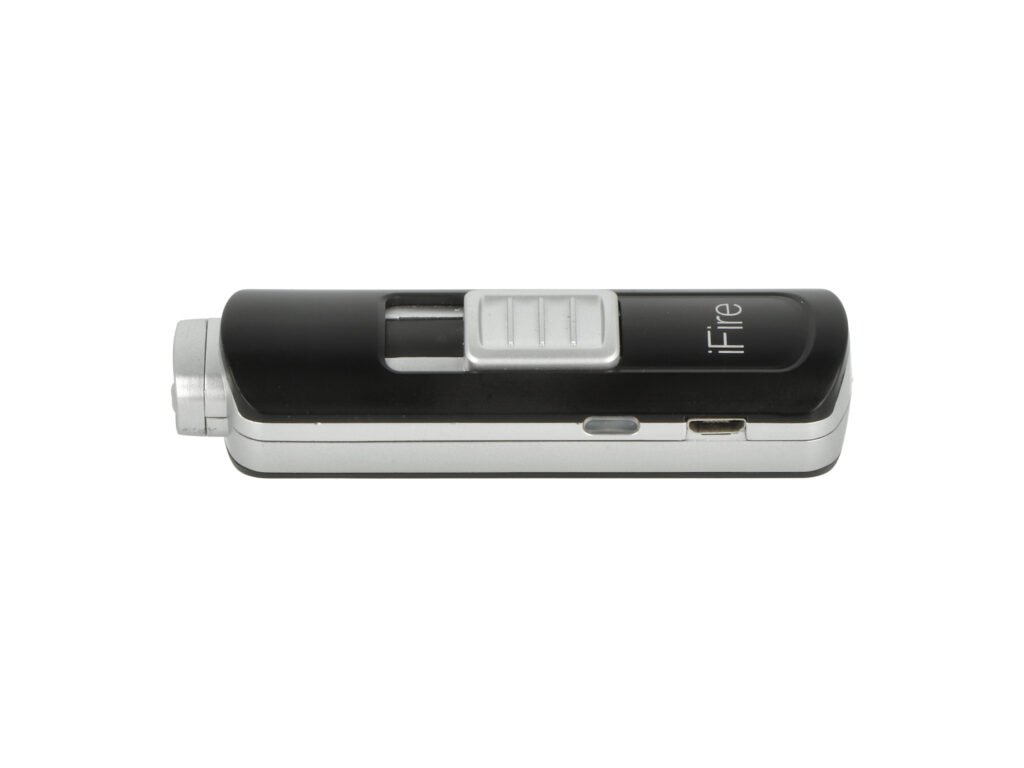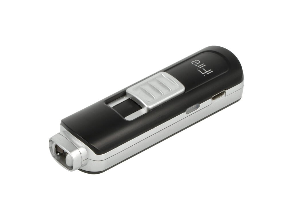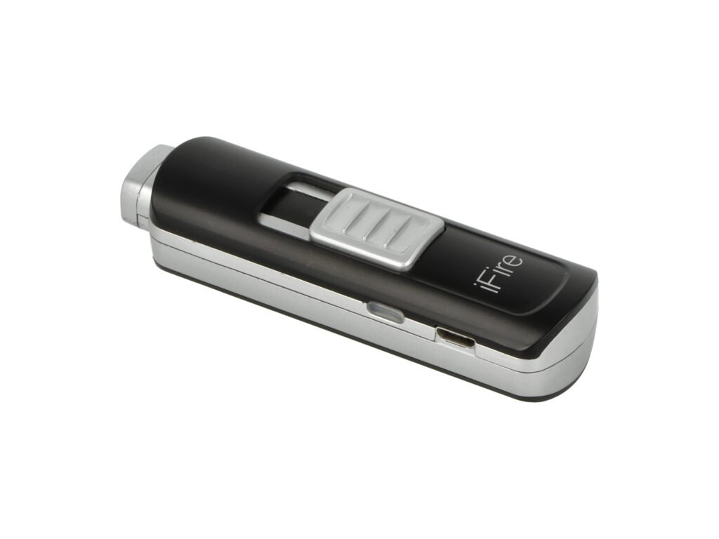 Plazmový USB zapalovač s elektrickým zapalováním. Plastový USB zapalovač Wildfire iFire využívá k zapálení plazmový oblouk namísto tradičního plynu, který vznikne elektrickým výbojem. Zapalovač je v černo stříbrné barevné kombinaci s pololesklým povrchem. Plazmový zapalovač se zapálí tak, že posuvným krytem (pojistka proti zapálení) na horní straně směrem nahoru vysunete plazmové hořáky a tím dojde k odkrytí tlačítka Power pro zapálení. Po stisknutí tohoto tlačítka dojde k vytvoření elektrického oblouku a plazmový zapalovač je připravený k zapalování. Po puštění tlačítka Power se elektrický oblouk vypne. Na boční straně najdeme LED kontrolku a vestavěný MicroUSB port pro nabíjení. LED kontrolka během nabíjení integrované baterie pomocí přiloženého USB kabelu svítí modře, při plném dobití zhasne. Doba nabíjení zapalovače je cca 2-3 hodiny. Zapalovač je dodávaný v dárkové krabičce.Rozměry zapalovače (Š x H x V): 25 x 18 x 87 mm.Obsah balení: 1x USB zapalovač, 1x nabíjecí kabel MicroUSB - USBDoplňkové parametry