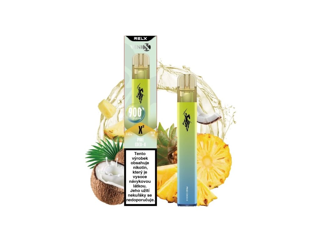 Spojení svěžího ananasu a jemného kokosu vás přenese do tropického ráje. VENIX X2 – Pine Coco-X nabízí jedinečný zážitek s intenzivní chutí a zvýšenou kapacitou 900 potahů, která vás bude provázet po celý den. Obsah nikotinu: 1.62 % (celkem 34,51 mg nikotinu, na jedno potáhnutí 0,0385 mg)Doplňkové parametry