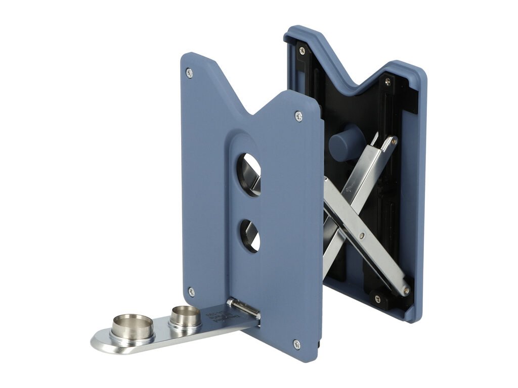 Vyštípávač Caseti s dvěma velikostmi ostří a stojánkem na doutník. Kovový doutníkový vyštípávač je precizně zpracovaný a jeho světle modrý povrch je v příjemné matné úpravě. Na čelní straně najdeme výklopné dvě ostří s průměrem 7,5 a 10 mm. Perfektně nabroušené ostří vyrobené z kvalitní nerezové oceli zajišťuje dokonalý řez, bezproblémové používání a dlouhou životnost. Stabilitu vyštípávače na stole zajištuje rozložitelný mechanismus, díky kterému se dá složit do praktické velikosti. Po rozložení vznikne stojánek pro doutník, který opřete do výřezu v horní části. Vyštípávač je dodávaný v látkovém sáčku a v originální dárkové krabičce.Rozměry (Š x H x V složený): 56 x 10 x 76 mm